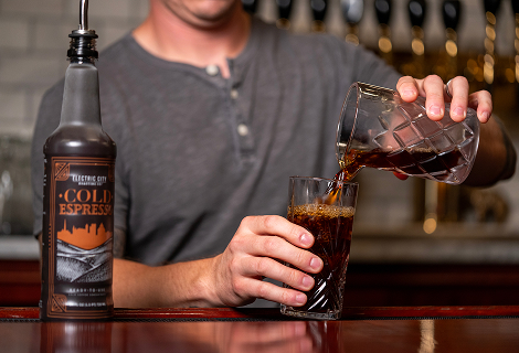 3. Pour 1oz to 1.5oz of ECR Cold Espresso over the ice water